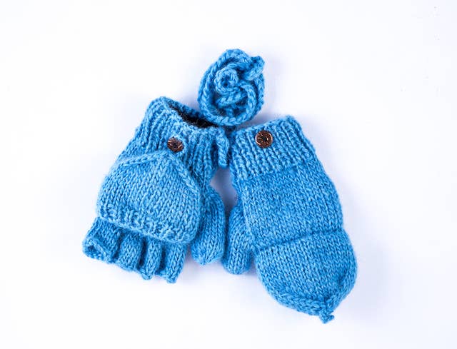 Hand Knit Convertible Kids Gloves-Mittens