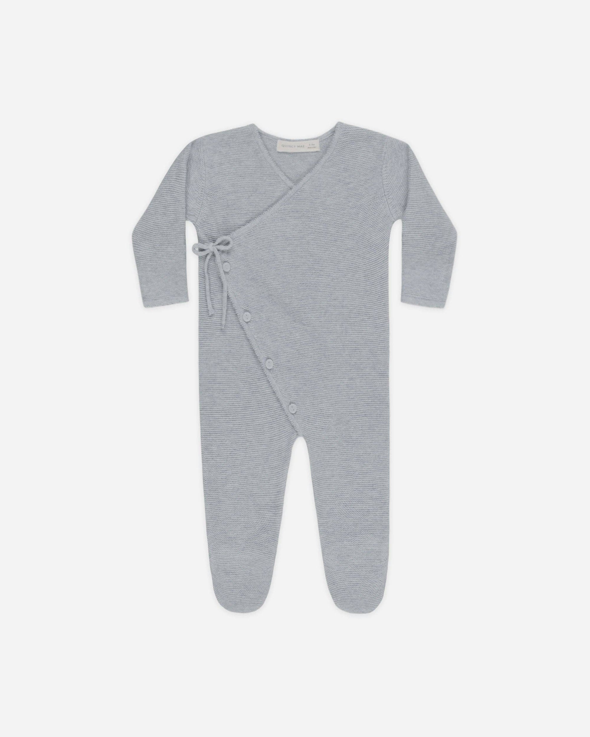Wrap Knit Footie Heathered Dusty Blue