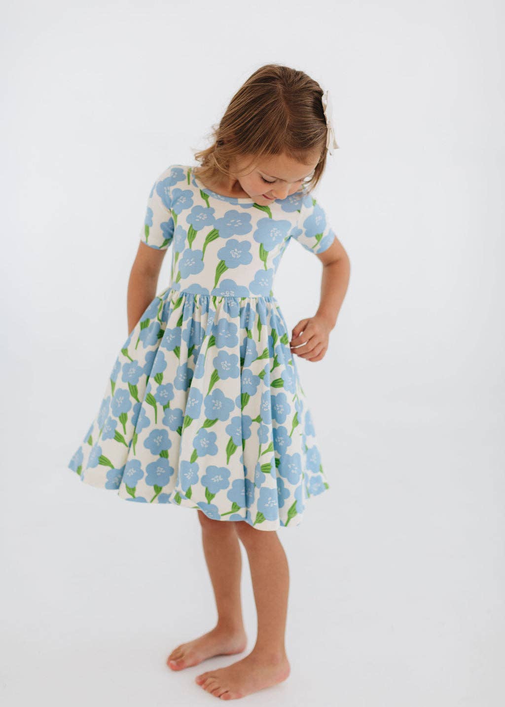 Short Sleeve Twirl Dress in Blue Garden: Blue Garden